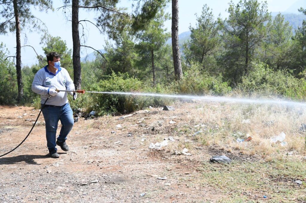 Ayrıca, Veteriner İşleri Müdürlüğü İlaçlama Birimi de bölgede kene ve zararlı haşerelere karşı ilaçlama çalışması gerçekleştirdi.